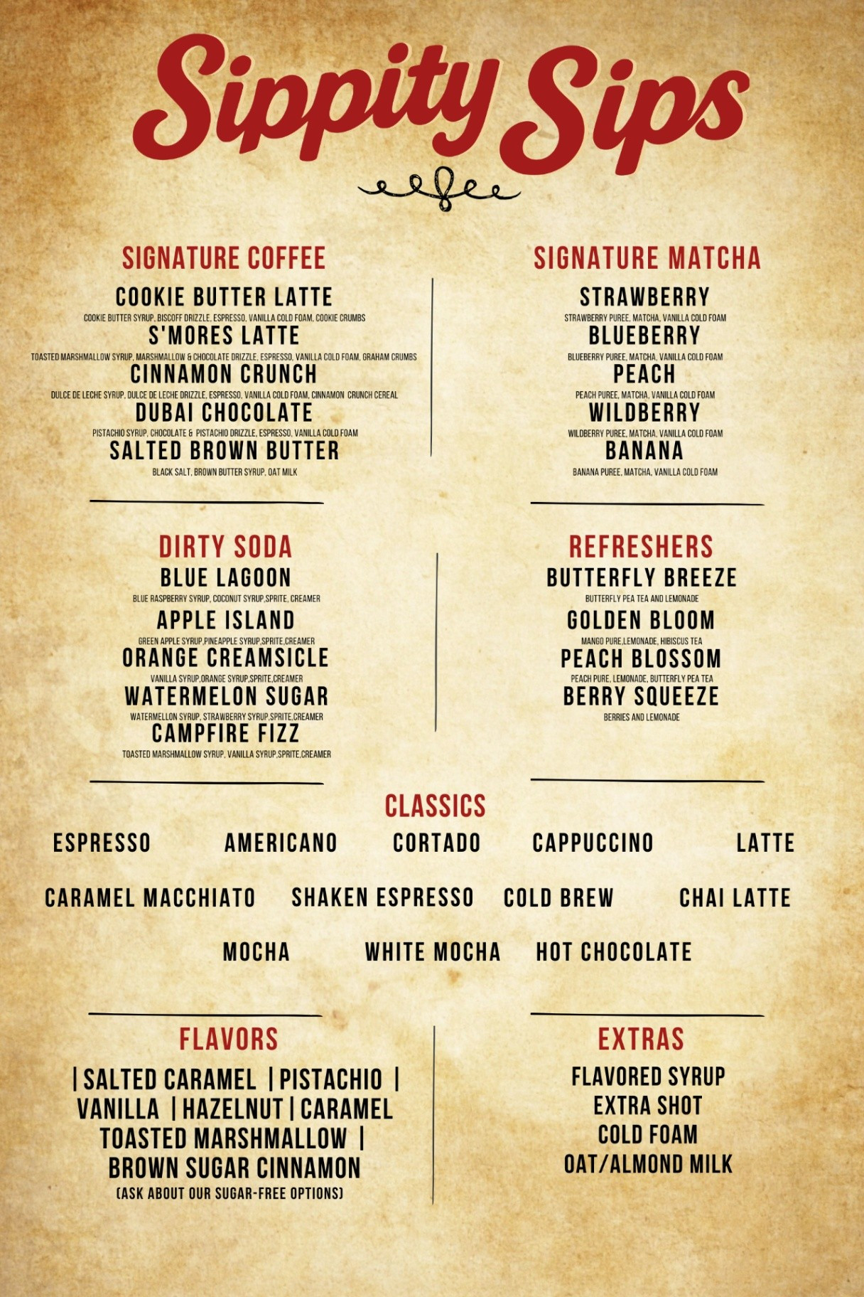 Prices may vary by location or event. Check trailer menu or ask your barista.